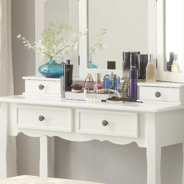 $119.18 White Wooden Vanity, Make Up Table and Stool Set